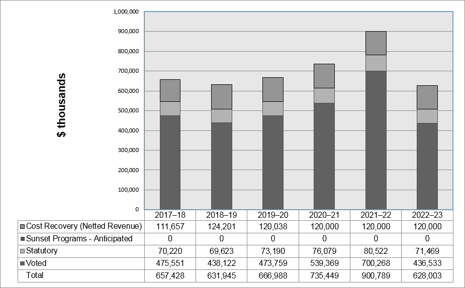 | Fiscal year | Total | Voted | Statutory | Sunset Programs - Anticipated | Cost Recovery (Netted Revenue) |