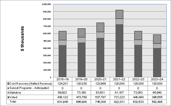| Fiscal year | Total | Voted | Statutory | Sunset Programs - Anticipated | Cost Recovery (Netted Revenue) |