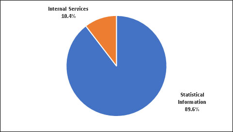 Total expenses, including respendable revenue and services provided without charge by federal government departments, were $852.4 million in 2020–21. These expenses comprised $763.4 million (89.6%) for Statistical Information and $89 million (10.4%) for Internal Services.
