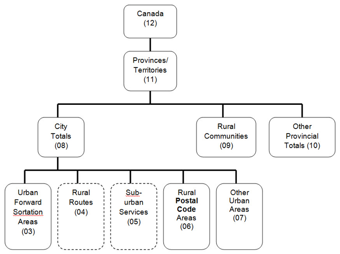 When a client is interested in purchasing data for areas made up of Postal Codes that are considered non‑standard postal geography, a conversion file is necessary. In this context an electronic file containing a combination of Postal Codes making up one or more user-defined area(s) is referred to as a conversion file. The data can then be compiled for these user-defined areas (subject to our confidentiality restrictions).