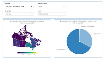 The Infrastructure Statistics Hub showcases the infrastructure economic accounts which represent a set of statistical statements that record the economic, social and environmental impacts related to the production and use of infrastructure in Canada and each province and territory.