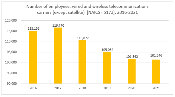 ![Number of employees, wired and wireless telecommunications carriers (except satellite) [NAICS - 5173], 2018-2023](/sites/default/files/images/2024-06/subject-telecommunications-indicator-employment-level-2023-eng.png)