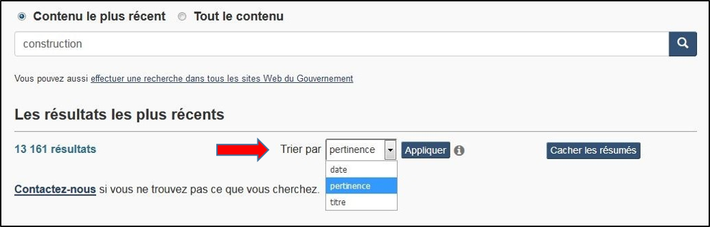 - pertinence – Les résultats sont classés en fonction d'une combinaison de facteurs, notamment l'emplacement des termes recherchés dans le contenu (p. ex. s'ils figurent dans le titre, il est probable que le produit soit plus pertinent pour votre recherche), l'actualité ou la nouveauté du contenu du produit et la popularité du produit, et d'autres facteurs.