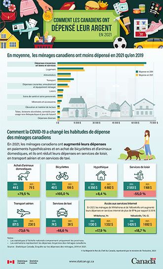 - repérer où l'argent des Canadiens est dépensé – l'alimentation, le logement, les soins de santé, les réparations automobile, divertissement, etc.;