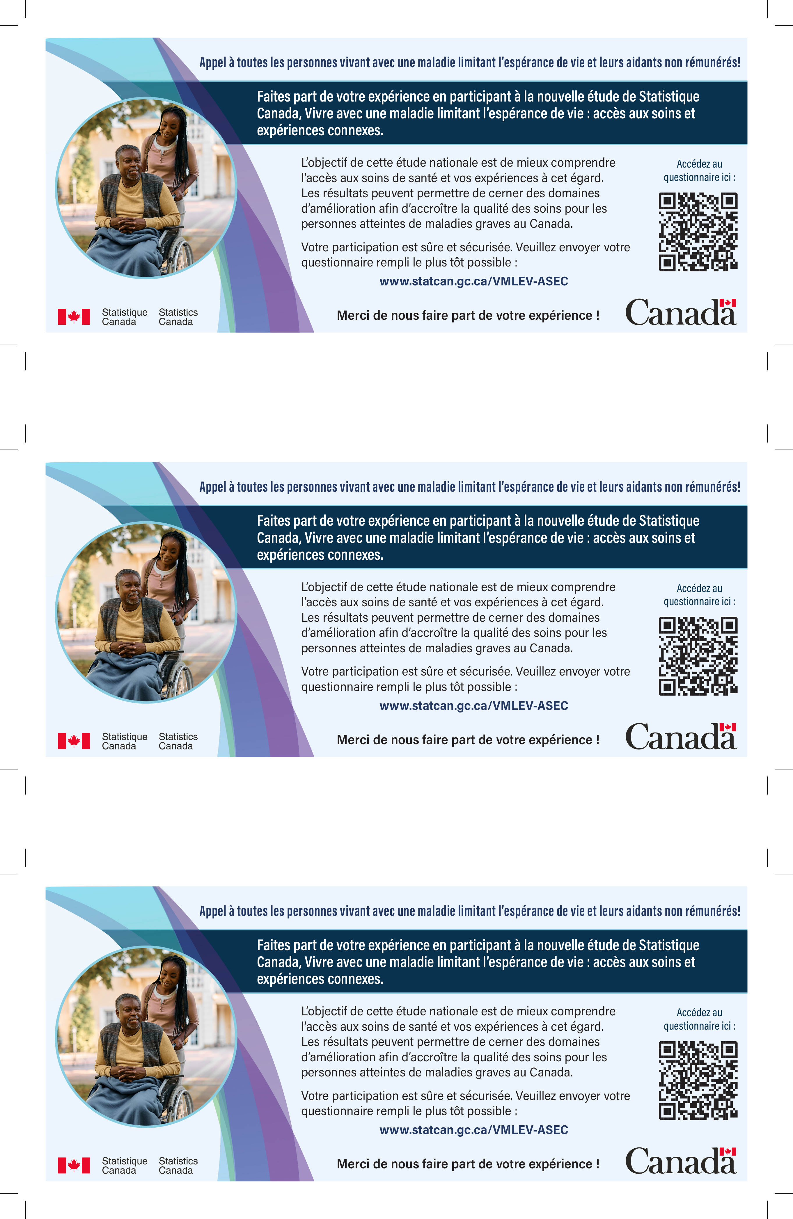 Faites part de votre expérience en participant à la nouvelle étude de Statistique Canada, Vivre avec une maladie limitant l’espérance de vie : accès aux soins et expériences connexes.