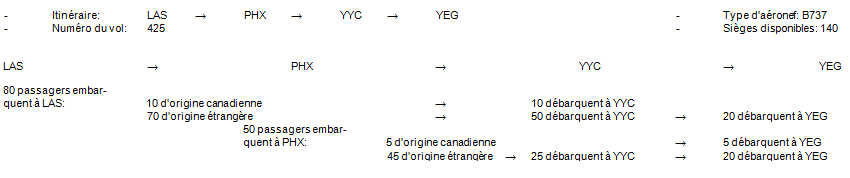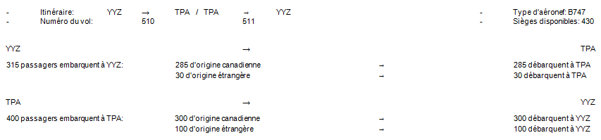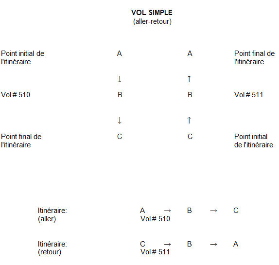 Exemple 1: Vol simple: une origine et une destination (passagers seulement)