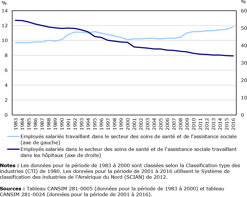 | Employés salariés travaillant dans le secteur des soins de santé et de l'assistance sociale | Employés salariés dans le secteur des soins de santé et de l'assistance sociale travaillant dans les hôpitaux | |