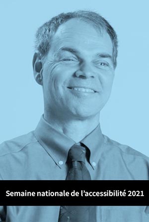 Tony : Bonjour, je m'appelle Tony Labillois, je suis le directeur de la division de la statistique du secteur public à Statistique Canada et je suis aussi le Champion pour les personnes handicapées et pour l'accessibilité depuis 2002, et je suis né avec une basse vision, ce qui fait que pour moi, c'est une vision normale, mais qui est beaucoup plus faible que pour les autres personnes.