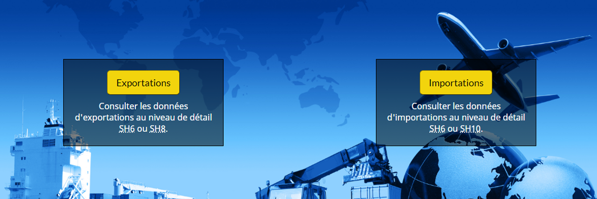 L'application Web sur le commerce international de marchandises du Canada (CIMC) est une base de données en ligne dans laquelle vous pouvez sélectionner et télécharger des données détaillées sur le commerce international au moyen du Système harmonisé de classification des marchandises (système fondé sur une classification des produits à 8 chiffres et 10 chiffres pour les exportations et les importations, respectivement). Recherchez à l'aide d'une combinaison de variables telles que : partenaire commercial, province, état, année, mois ou type de marchandise. Visualiser la vidéo d'application Web sur le CIMC pour en savoir plus sur les données et les fonctionnalités ajoutées.