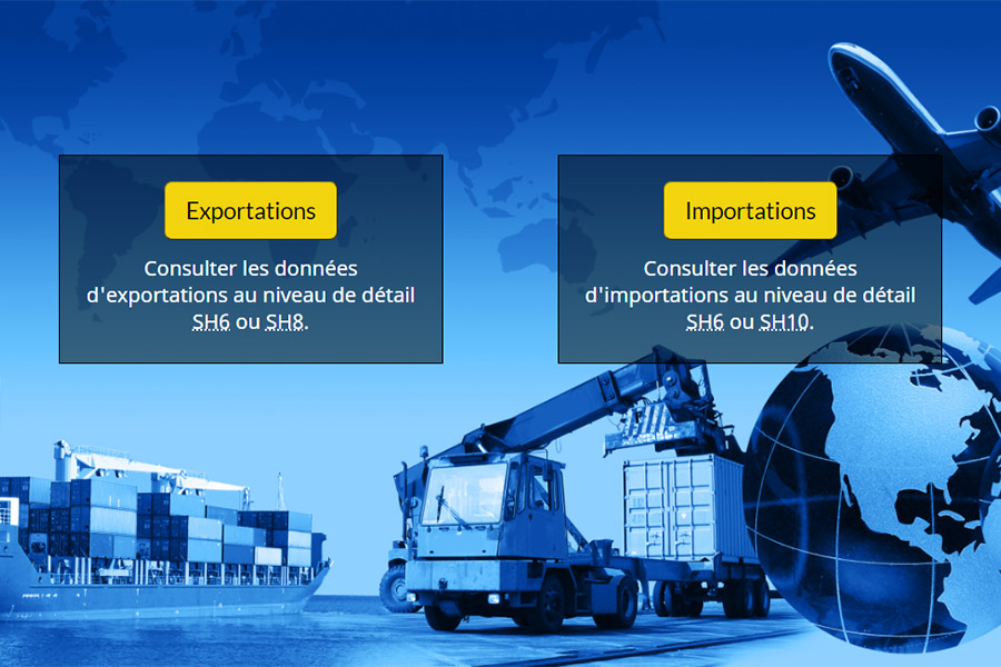 L'application Web sur le commerce international de marchandises du Canada (CIMC) est une base de données en ligne dans laquelle vous pouvez sélectionner et télécharger des données détaillées sur le commerce international au moyen du Système harmonisé de classification des marchandises (système fondé sur une classification des produits à 8 chiffres et 10 chiffres pour les exportations et les importations, respectivement). Recherchez à l'aide d'une combinaison de variables telles que : partenaire commercial, province, état, année, mois ou type de marchandise. Visualiser la vidéo d'application Web sur le CIMC pour en savoir plus sur les données et les fonctionnalités ajoutées.