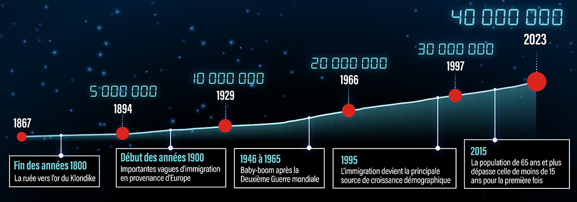 Description - Croissance démographique du Canada, de la confédération à 2023.