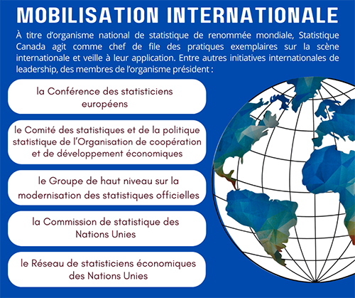 Le travail de modernisation que l'organisme a accompli au cours des dernières années lui a permis de se transformer avec détermination. Alors que Statistique Canada poursuivait son parcours de modernisation, il a redoublé d'efforts pour se conformer aux cinq principes de modernisation suivants :