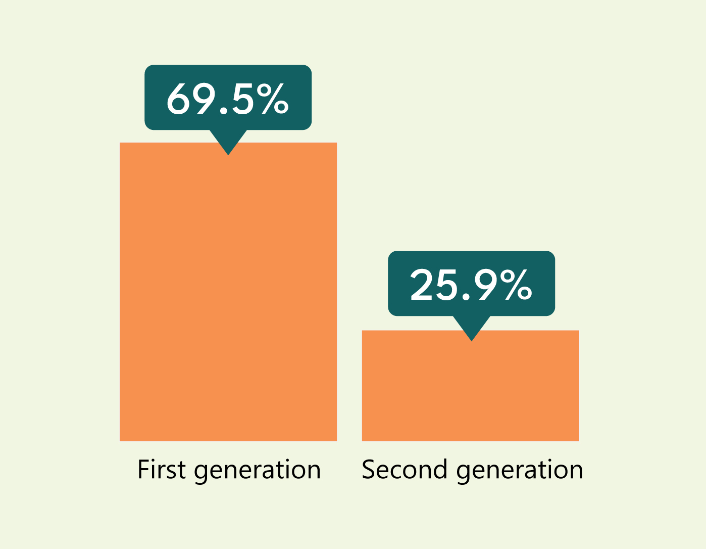 - The most frequently reported Asian origins across generations reflect both recent and historical immigration trends. Among the most frequently reported Asian origins, Iranian (81.3%), Persian (78.0%) and Korean (77.2%) were those who had the largest share born outside Canada. Lebanese (36.9%), Vietnamese (36.7%) and Sri Lankan (34.1%) were the origins with the highest share of their populations of second generation. Japanese (32.8%) and Lebanese (20.5%) were the Asian origins with the largest share of their population born in Canada with Canadian-born parents (third generation).