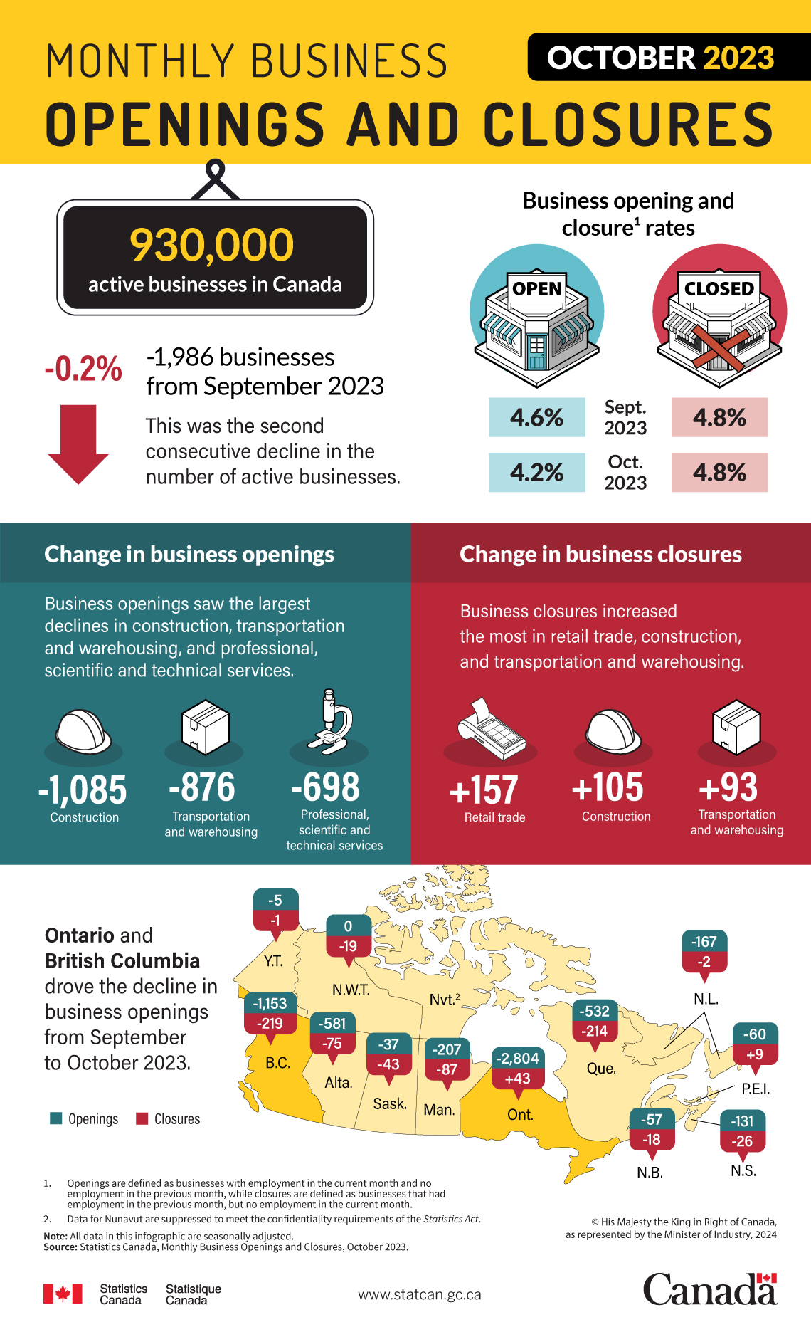 Source: Statistics Canada, Monthly Business Openings and Closures, October 2023.