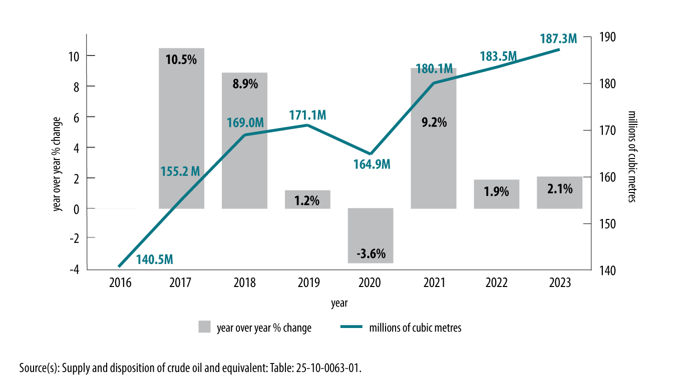 Source(s): Supply and disposition of crude oil and equivalent: Table: 25-10-0063-01.