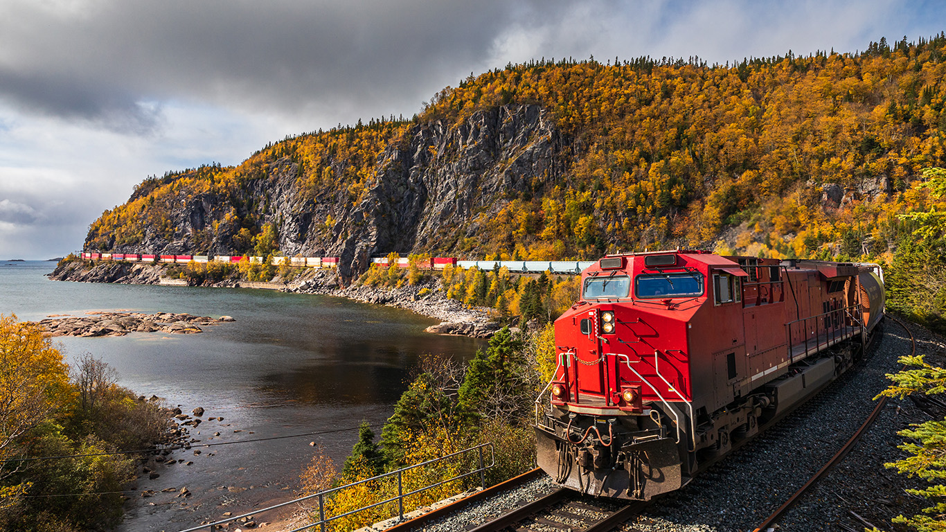 Railways carried 4,513 railway cars of sand, gravel and crushed stone in July 2025, comparable to the distance between Toronto and Cobourg, Ontario.