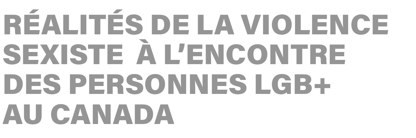 En 2018, l’Enquête sur la sécurité dans les espaces publics et privés (ESEPP) ― une vaste enquête auprès des ménages représentative à l’échelle nationale ― a été menée par Statistique Canada dans le but de faire progresser les connaissances sur la violence fondée sur le genre au Canada. Les résultats de l’enquête révèlent que les personnes lesbiennes, gaies ou bisexuelles ou ayant une orientation sexuelle autre que l’hétérosexualité (LGB+) au Canada sont plus susceptibles que les personnes hétérosexuelles d’être victimes d’agressions physiques et sexuelles, ou de subir des blessures à la suite de l’agression.