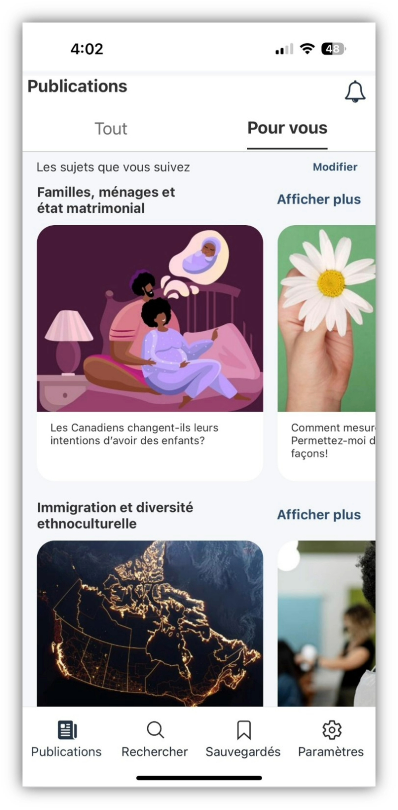 Au cours de la dernière année, nous avons amélioré l’écran « Publications » en simplifiant la présentation de votre contenu préféré et la conception générale de l’écran. Nous avons également réduit le nombre d’étapes requises pour commencer à utiliser l’application.
